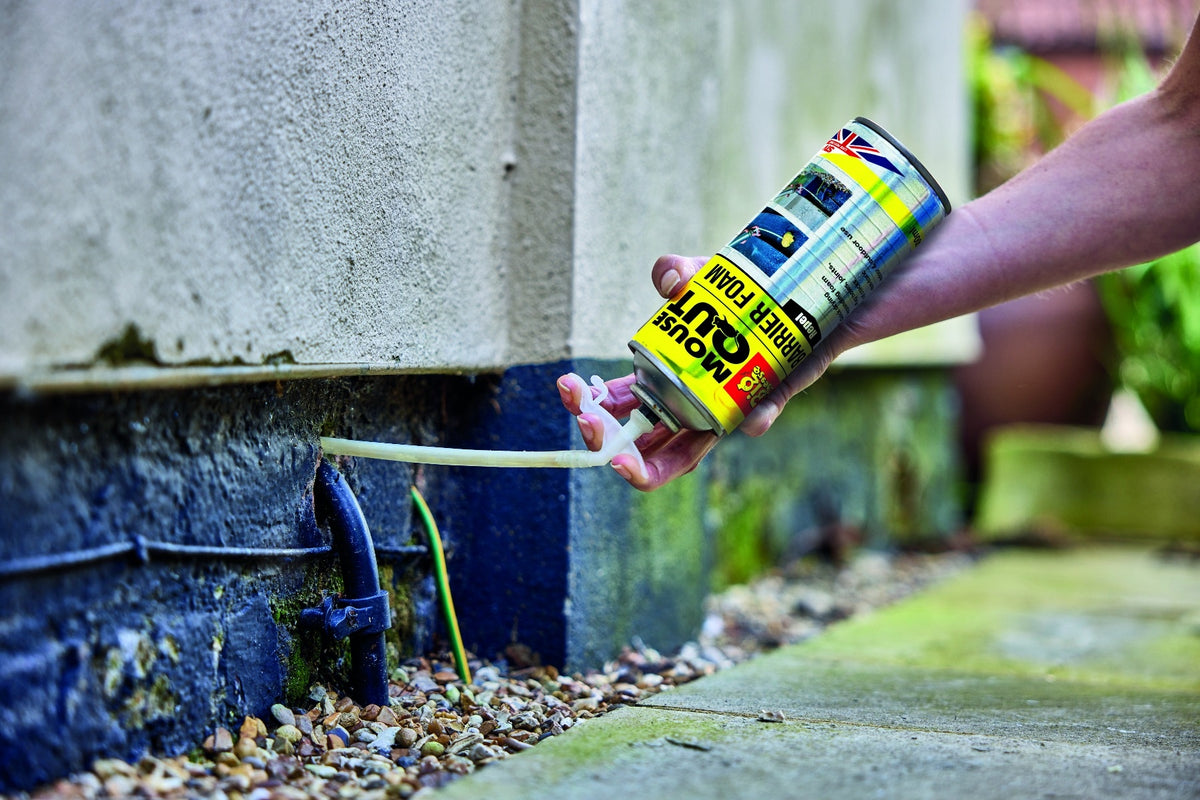 - Niet-giftig, uitzetbaar barrièreschuim om ingangsgaten van knaagdieren te blokkeren
